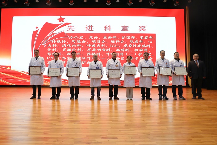 张袁丰书记代表医院党委向受到表彰的先进集体和先进个人表示热烈祝贺,向一年来辛勤奋战在医院各个岗位的全体职工表示崇高敬意和诚挚问候!
