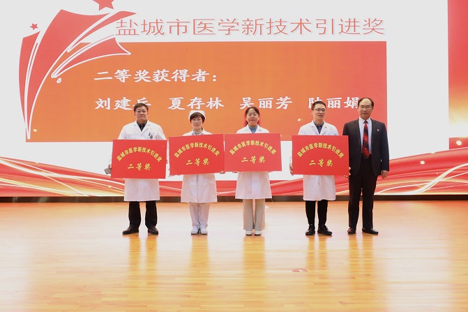 院领导为盐城市医学新技术引进奖二等奖获得者颁发奖牌