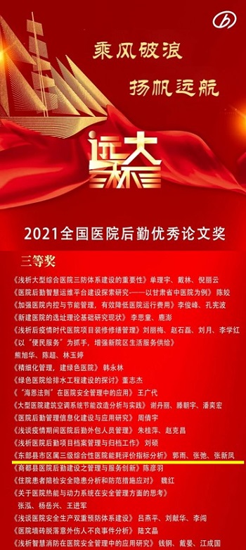 近年来,精细化管理成为我院后勤管理发展的主旋律,经过努力探索,在节能降耗、智慧共享、信息化建设、智慧运行管理、智慧安防管理、智慧消防管理、联盟管理等方面形成了具有自身特色的管理模式,获得了社会各界的广泛认可。在前不久,由上海交通大学卫生政策与医务管理研究所、睿医界组织的第四届“寻找最优秀的你--全国医院后勤管理”系列评选活动中,我院获得“十佳医院后勤院长”、“全国医院后勤优秀论文组织奖”、“全国医院后勤优秀论文奖”三项荣誉。新形势下,医院将立足新发展阶段,更加自信坚定地走在公立医院高质量发展的大路上,以“十四五”健康中国建设为契机,开拓创新、锐意进取,不断提高人民群众的就医体验感和获得感。