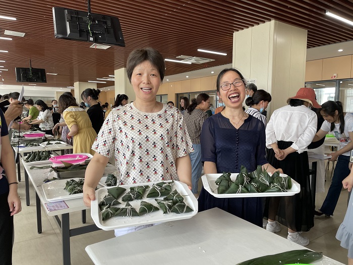 活动现场欢声笑语不断,职工们一起动手包粽子,娴熟的“老手”带着“新手”,卷粽叶、放糯米、相互配合,十分默契。不一会儿,三角形、长条形等各式各样的漂亮粽子,就这样一个个在职工们手中诞生了。大家愉快地享受着包粽子的过程。我们包的不仅仅是粽子,还把快乐、幸福、安康一同包进这香香糯糯的粽子里。