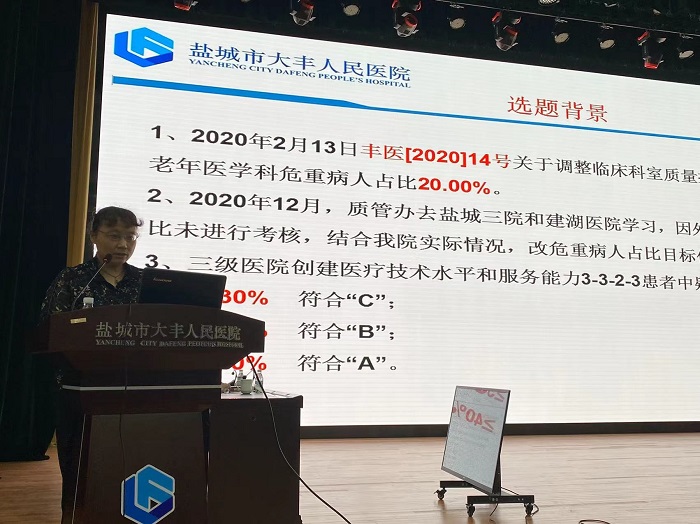 老年科主任戴午阳汇报了提高住院疑难危重患者占比的持续改进,经过8个月的持续改进,老年科疑难危重患者占比从8.11%上升至10.94%,达到10%的目标值。但还存在治疗小组未及时将相关病人列入危重病人管理、科室治疗小组执行情况监管不及时等相关需要持续改进的问题。