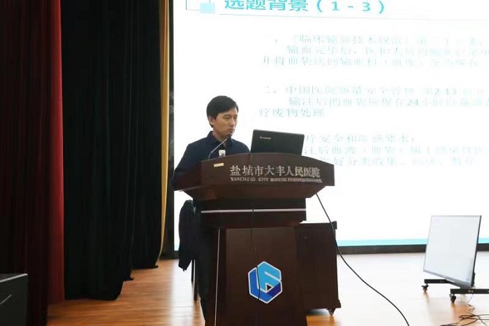 输血科主任蔡晓晨汇报了提高血袋回收规范性管理的持续改进。科室经过6个月的持续改进,血袋24小时回收率从94.2%上升至100%,进一步规范了血袋运送、记录及处置。通过持续改进发现了还需要进一步解决的问题有跨病区(科室)输血后血袋存在回收不规范情况、输血系统软件功能有待进一步改进等。