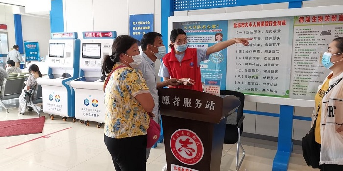 为进一步加强我院精神文明建设,助力我区全国文明城市创建工作,大力弘扬雷锋精神和“奉献,友爱,互助,进步”的志愿者精神,在院领导的大力支持下,院团委从全院32周岁以下职工中招募了500多位志愿者并成立了大丰人民医院志愿者服务队,定期对志愿者进行岗前培训,每月排班,实行签到制和打卡计时制,有力的推动了我院志愿者活动的快速发展。