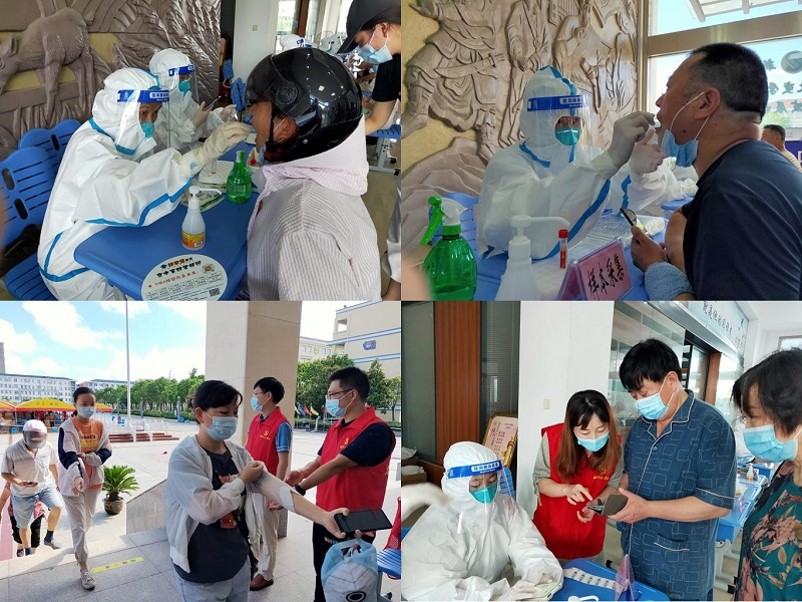 8月4日,我院组织党员志愿者,全力协助高新、海棠、滨河、新德、德润、朝阳、人民、育红等社区做好全员核酸检测工作。
