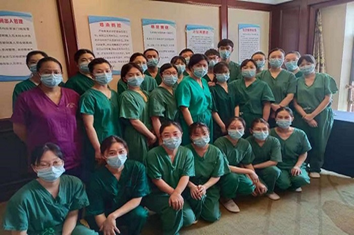 院质量管理办公室郁卫洲主任、神经内科护士吴夏萍,提前一天到达半岛温泉酒店医学隔离观察点,分别承担了隔离点管理和核酸采集工作;耳鼻喉科护士彭丽慧,提前承担了华东国际会议中心医学隔离观察点核酸采集工作任务,虽然任务繁重,但大家任劳任怨,从无怨言,特别是他们的家人,都积极支持抗疫工作。